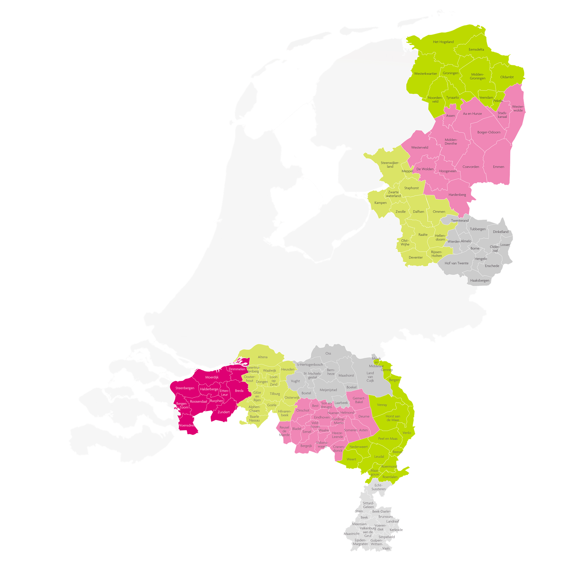 Om u een idee te geven van wat u kunt verwachten, geven we u een inschatting van de doorlooptijd. Ons werkgebied is verdeeld in vestigingen, elk met een overzicht van de gemeenten die erbij horen. Als u een vestiging openklapt dan ziet u hoelang het duurt bij een verzwaring in de meterkast, bij vervanging van de aansluitkabel en als het stroomnet in uw buurt bijna vol is.