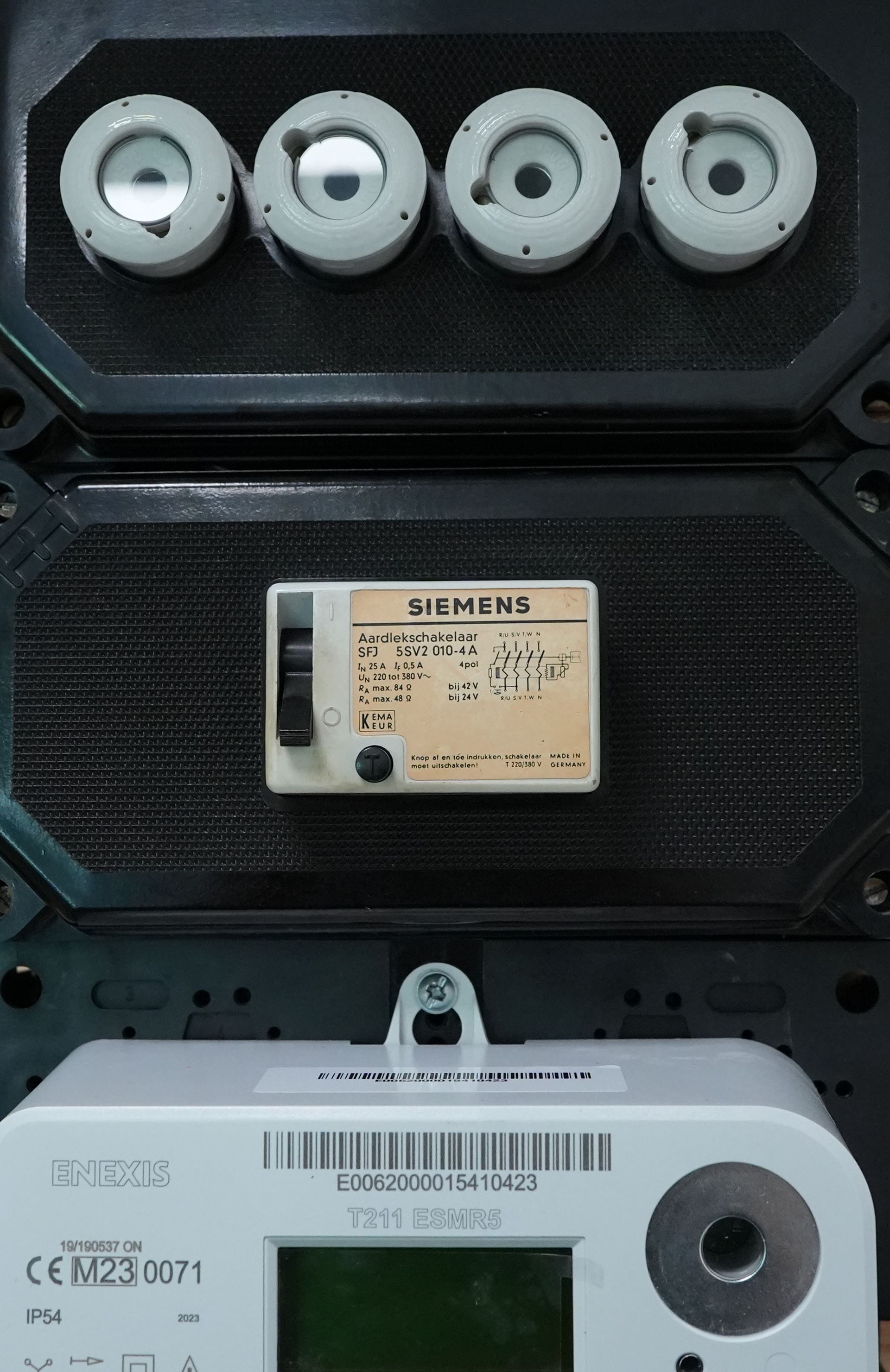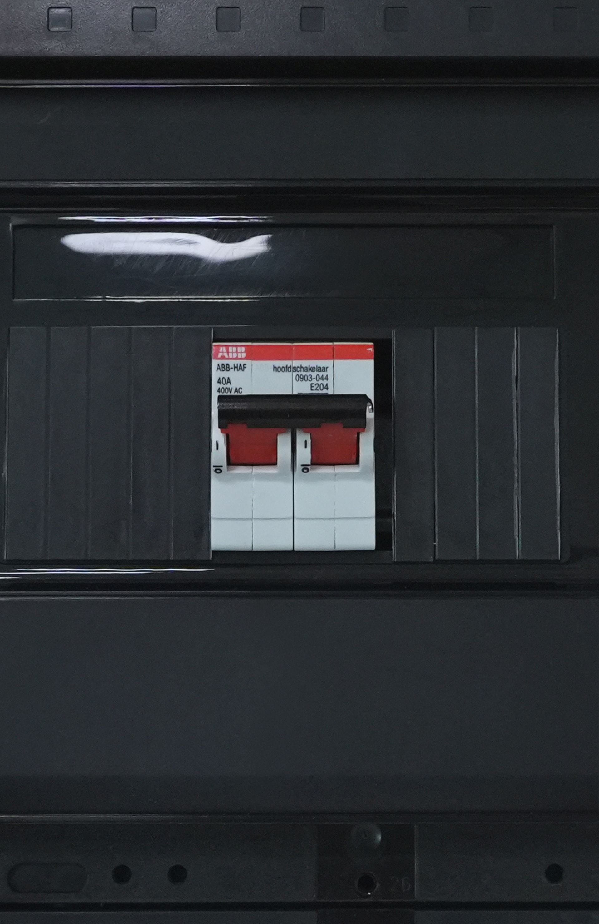 De hoofdschakelaar hoort bij uw eigen installatie. Dat betekent dat u verantwoordelijk bent voor het plaatsen, onderhouden en vervangen ervan. Wij zorgen voor de aansluiting tot aan de meter. Alles daarboven regelt u zelf, eventueel met hulp van een installateur.