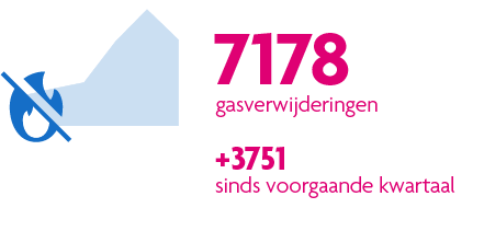 Nederland gaat van het aardgas af. U ziet hier hoeveel gasaansluitingen in 2023 door ons verwijderd zijn waarbij de elektriciteitsaansluiting is gebleven. Ook ziet u hoeveel aansluitingen er afgelopen kwartaal zijn verwijderd.