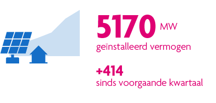 Hier ziet u hoeveel megawatt aan vermogen voor zonne-energie door consumenten is geïnstalleerd voor consumenten. Ook ziet u hoeveel vermogen daarbij is gekomen afgelopen kwartaal. Met 1 zonnepaneel op uw dak, wekt u ongeveer 300 watt per paneel op (tijdens een piekmoment). 1 megawatt is 3.000 keer zoveel vermogen als het gemiddelde piekwatt van 1 zonnepaneel.