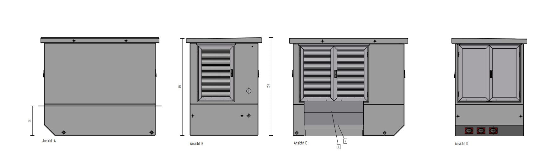 De elektriciteitshuisjes hebben nu nog witte deuren, maar die worden uiteindelijk groen gemaakt. Zo vormen ze één geheel en gaan ze op in de groenstrook.