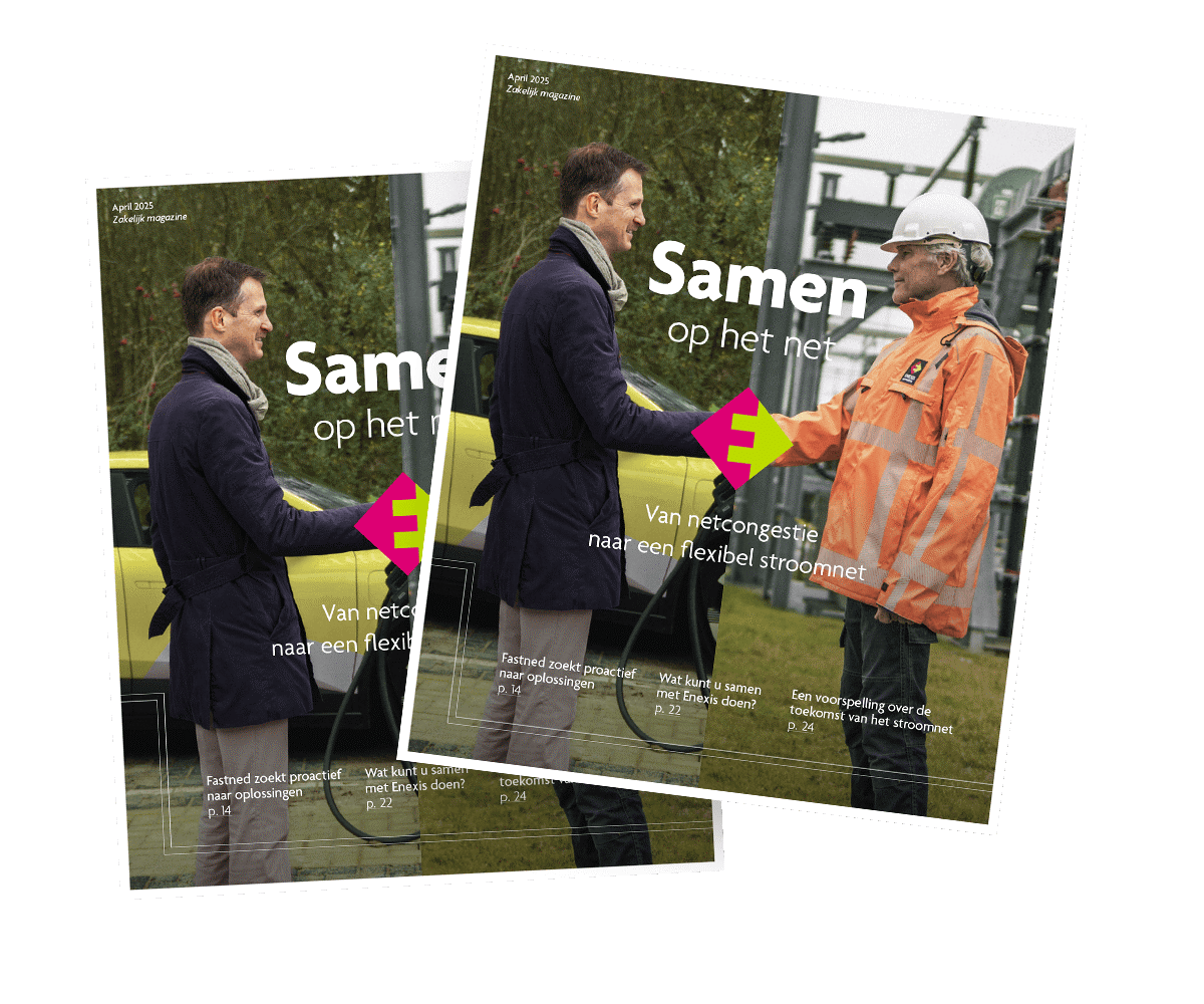 Hoe speelt u in op de veranderingen rondom het stroomnet? Welke slimme oplossingen zijn er om uw gecontracteerd vermogen efficiënter te gebruiken? U leest het in ons zakelijke magazine: vol verhalen van bedrijven en praktische handvatten.